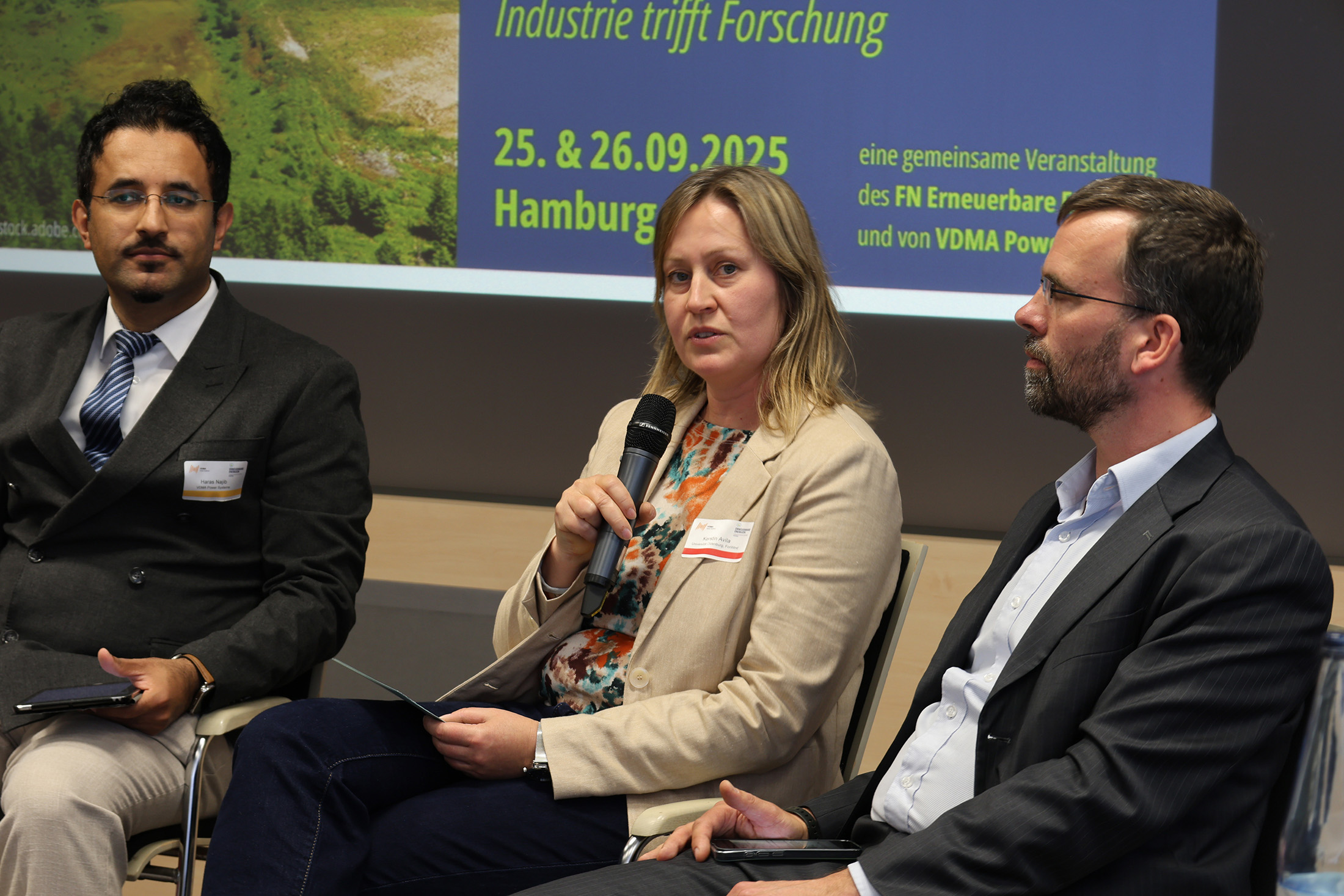 In der Eröffnungsdiskussion stellte Prof. Dr. Kerstin Avila (Universität Oldenburg, ForWind) das Reallabor 70 GW Offshore Wind als ein zentrales Beispiel für anwendungsnahe Energieforschung vor. Sie betonte die Bedeutung von Verbundprojekten zwischen Industrie, Forschungseinrichtungen und Universitäten, die es ermöglichen, kurzfristige technologische Lösungen mit langfristigen Entwicklungspfaden zu verbinden.